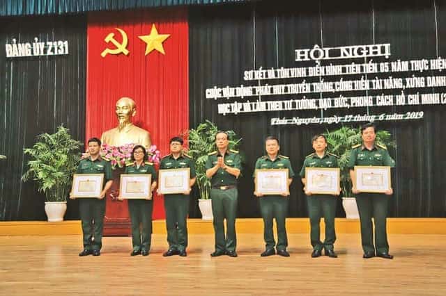 Nhà máy Z131 là “Đơn vị điểm toàn diện” của Tổng cục CNQP trong thực hiện Cuộc vận động, học và làm theo Bác. Trong ảnh: Đại tá Ngô Minh Khải, Giám đốc Nhà máy Z131, trao Giấy khen tặng các tập thể đạt thành tích xuất sắc trong thực hiện Cuộc vận động. Ảnh: LAM THU