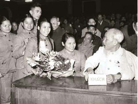 Chủ tịch Hồ Chí Minh nói chuyện thân mật với đại biểu thanh niên xung phong dự Đại hội Thanh niên xung phong chống Mỹ cứu nước toàn miền Bắc (tháng 1/1967). Ảnh: TL