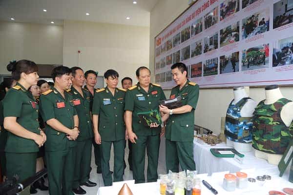 Đại tá Nguyễn Việt Hùng, Phó Chính ủy Tổng cục CNQP, xem các sản phẩm do Viện Công nghệ nghiên cứu chế tạo, trưng bày tại Đại hội.