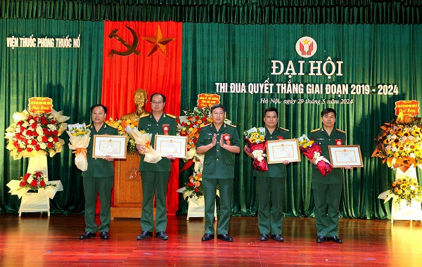 Nhân dịp này, Thủ trưởng Tổng cục CNQP đã trao Giấy khen của Tổng cục tặng Đại tá Phạm Văn Toại - Viện trưởng Viện TPTN và Đại tá Nguyễn Đức Long - Phó viện trưởng Viện TPTN, vì đã có thành tích xuất sắc trong phong trào TĐQT giai đoạn 2019-2024. Lãnh đạo, chỉ huy Viện TPTN cũng đã trao Giấy khen tặng 4 tập thể và 10 cá nhân điển hình tiên tiến trong phong trào TĐQT của Viện; trao Giấy khen tặng 2 tập thể và 3 cá nhân đạt thành tích cao trong đợt thi đua cao điểm “Tiếp bước chiến sỹ Điện Biên - Tiến lên giành 3 nhất” kỷ niệm 70 năm Chiến thắng Điện Biên Phủ (7/5/1954-7/5/2024).