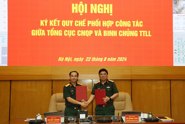 Nhân dịp này, Tổng cục CNQP và Binh chủng TTLL đã ký kết Quy chế phối hợp hiệp đồng trong thực hiện nhiệm vụ. Theo đó, Quy chế phối hợp gồm 3 chương, 9 điều, trong đó nội dung cơ bản gồm: Cung cấp, trao đổi thông tin thường xuyên thông qua lãnh đạo, chỉ huy và các cơ quan chức năng của hai bên; phối hợp trong quy hoạch, phát triển, bảo đảm kỹ thuật hệ thống TTLL quân sự; phối hợp sản xuất, cung ứng trang bị, vật tư kỹ thuật; phối hợp phát huy nguồn nhân lực và hiệu quả đầu tư; phối hợp trong nghiên cứu khoa học, đào tạo.
