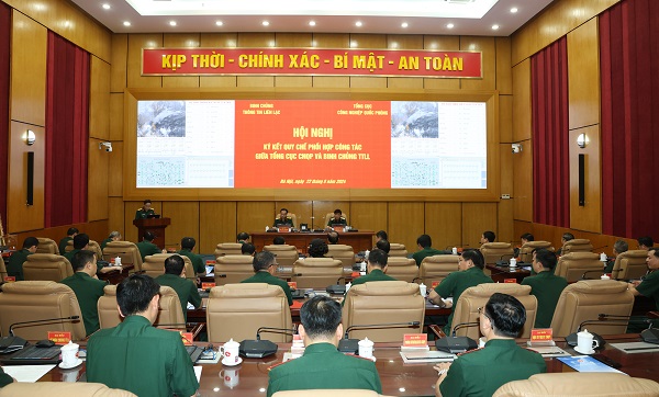 Trung tướng Hồ Quang Tuấn, Chủ nhiệm Tổng cục CNQP và Đại tá Vũ Viết Hoàng, Tư lệnh Binh chủng TTLL, đồng chủ trì hội nghị. Cùng dự có lãnh đạo, chỉ huy và đại diện một số cơ quan, đơn vị thuộc Tổng cục CNQP và Binh chủng TTLL.