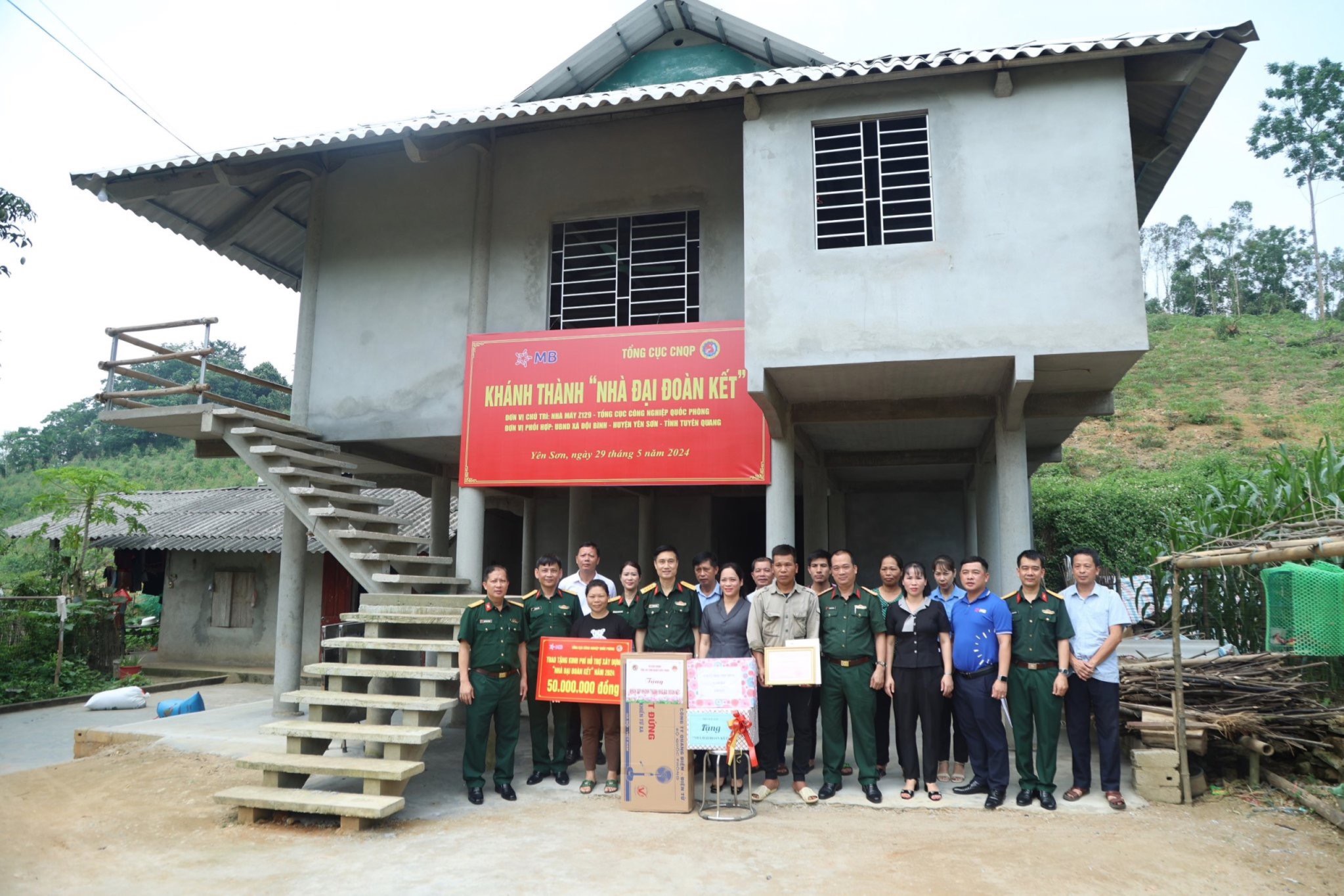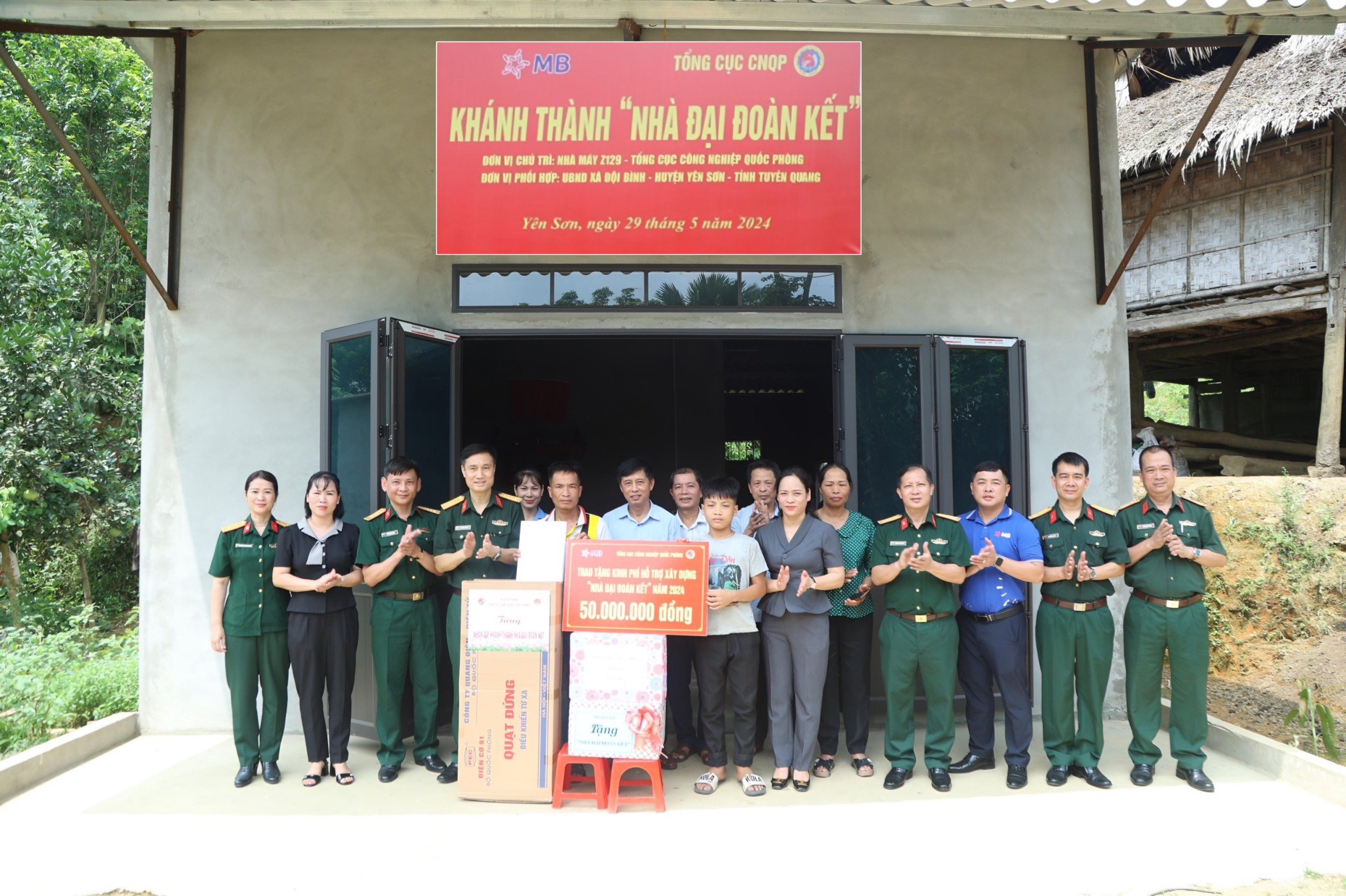 Cụ thể, Nhà máy Z129 và Đảng ủy, Hội đồng nhân dân, Ủy ban nhân dân xã Đội Bình đã phối hợp tổ chức khánh thành, bàn giao 3 Nhà Đại đoàn kết tặng gia đình ông Hoàng Văn Quân, ông Phương Văn Kỳ và bà Âu Thị Lý, là các hộ nghèo có hoàn cảnh khó khăn tại thôn Đồng Giản, thôn Hưng Quốc, xã Đội Bình, huyện Yên Sơn, tỉnh Tuyên Quang, với mức hỗ trợ 50 triệu đồng/nhà. Việc bàn giao nhà nhằm thực hiện Chương trình hỗ trợ xây dựng Nhà Đồng đội, Nhà Đại Đoàn kết theo đề án 80 của Bộ Quốc phòng; kinh phí do Tổng cục CNQP và Ngân hàng MB hỗ trợ, Nhà máy Z129 phối hợp với chính quyền địa phương tổ chức thực hiện. Các công trình được khánh thành, bàn giao là hoạt động có ý nghĩa thiết thực của Tổng cục CNQP, Nhà máy Z129 - đơn vị đóng quân trên địa bàn và Ngân hàng MB, hướng tới kỷ niệm 80 năm Ngày thành lập Quân đội nhân dân Việt Nam, 35 năm Ngày Hội Quốc phòng toàn dân.