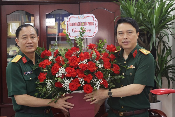 Đại diện lãnh đạo Ban Công đoàn Quốc phòng (Tổng cục Chính trị) tặng hoa chúc mừng Ban biên tập Tạp chí.