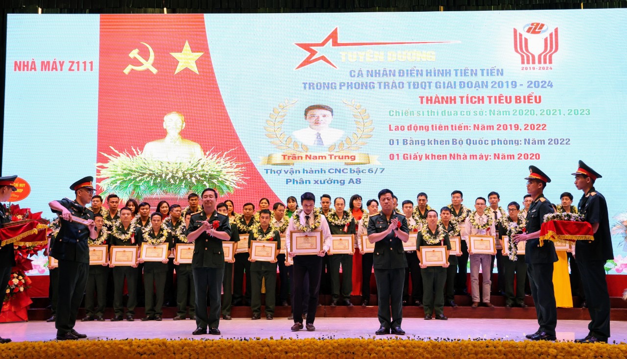 Tại Đại hội, Thủ trưởng Tổng cục CNQP, Đảng ủy, chỉ huy Nhà máy Z111 đã tuyên dương và trao thưởng tặng 7 tập thể, 50 cá nhân có thành tích xuất sắc trong phong trào TĐQT giai đoạn 2019-2024.