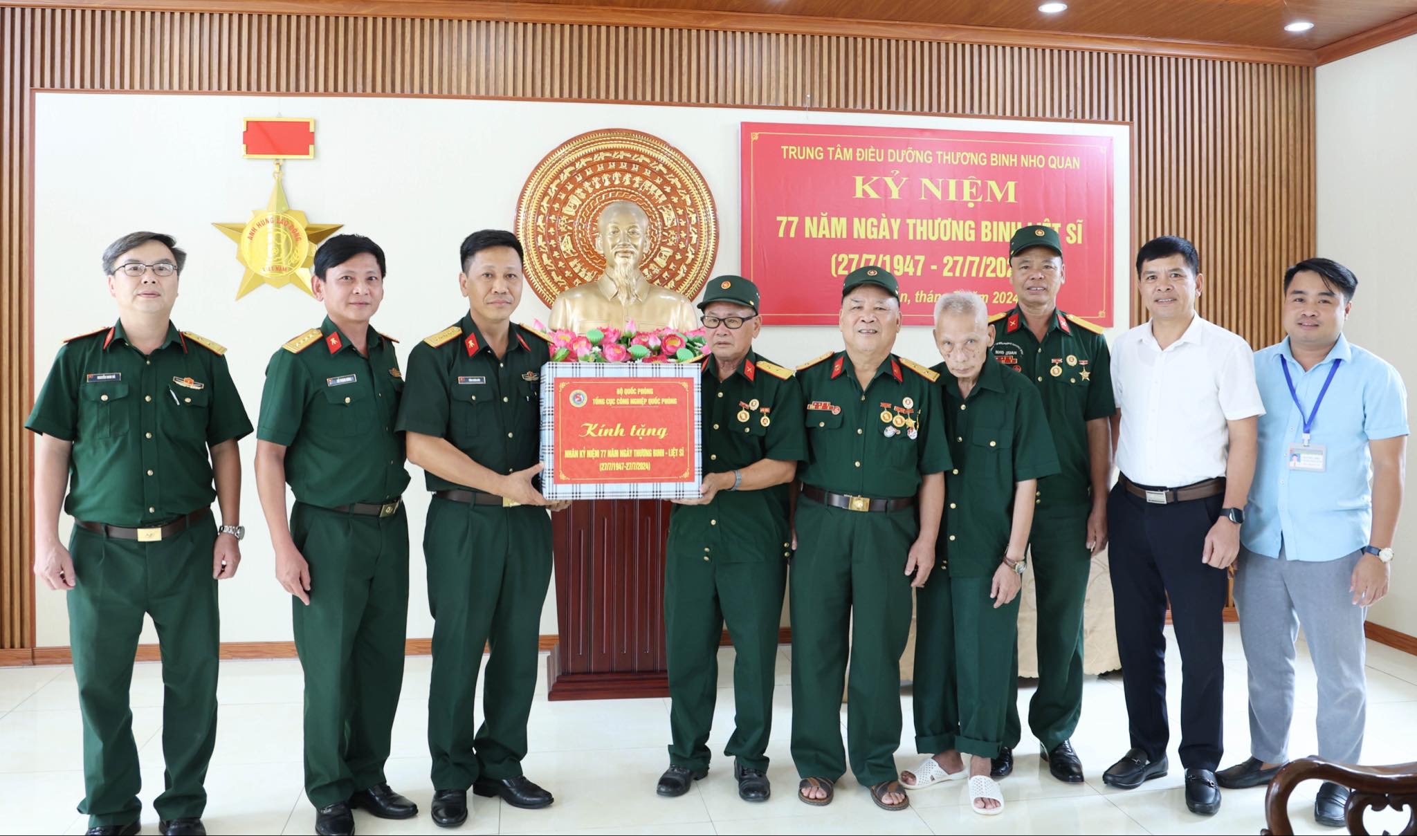 Cùng ngày, đoàn công tác của Tổng cục CNQP do Đại tá Tống Xuân Đức, Phó Chủ nhiệm Chính trị Tổng cục dẫn đầu đã đến thăm và trao quà tặng Trung tâm Điều dưỡng thương binh Nho Quan (Ninh Bình); Trung tâm Điều dưỡng Duy Tiên (Hà Nam).