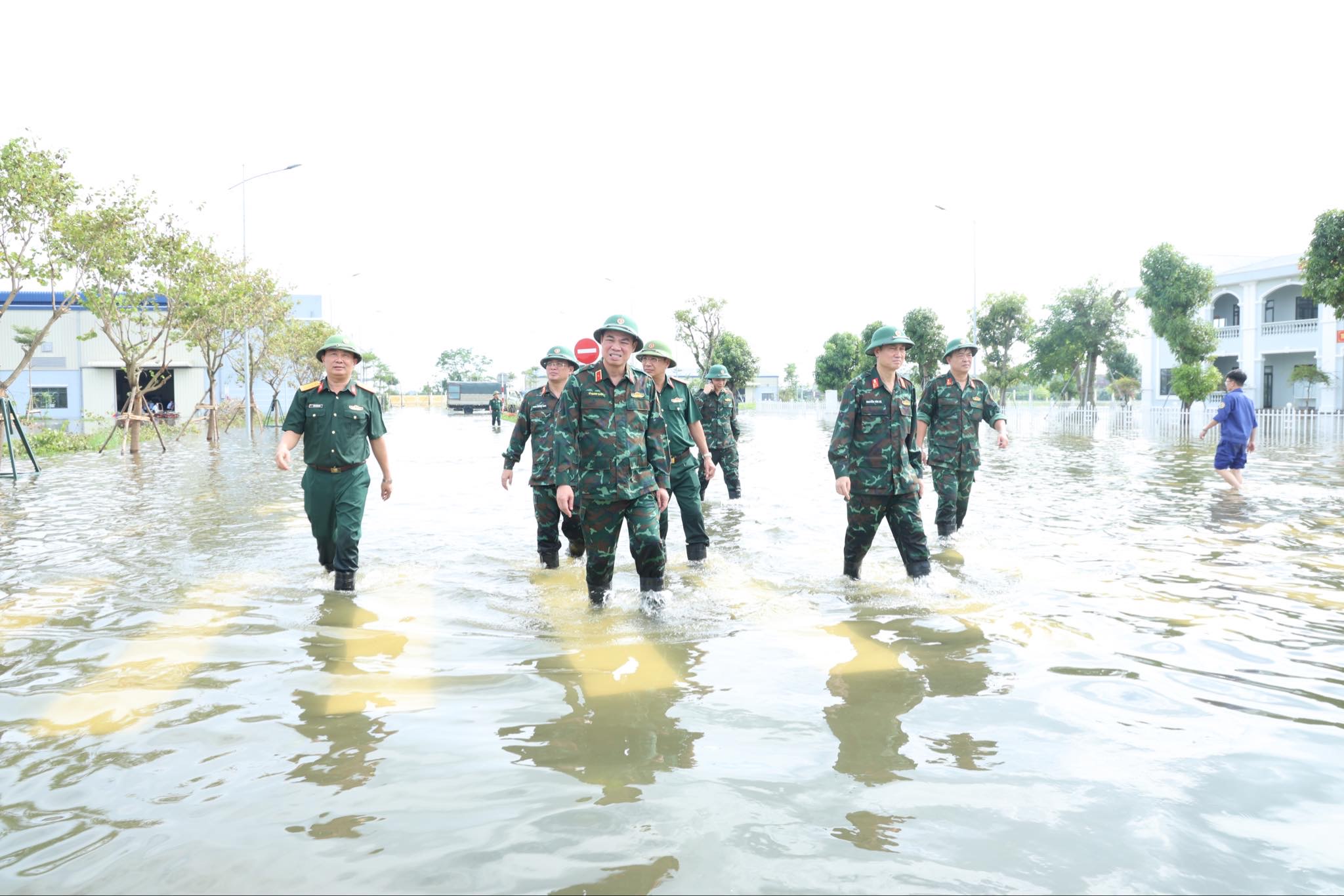 Thiếu tướng Lê Quang Tuyến, Phó Chủ nhiệm Tổng cục CNQP và đoàn công tác kiểm tra công tác phòng, chống ngập úng tại Nhà máy Z117.