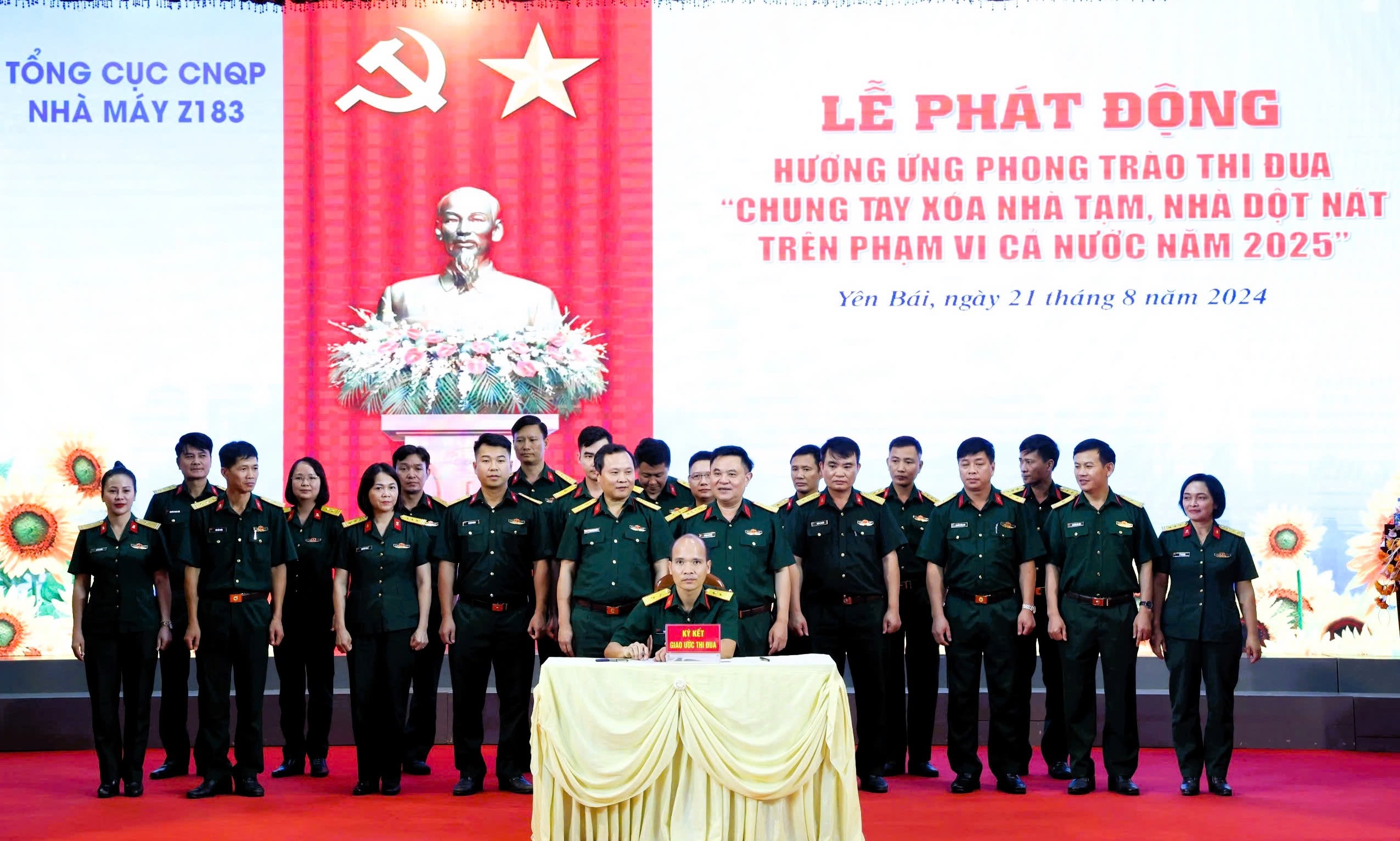 Phát biểu tại buổi lễ, Đại tá Nguyễn Đức Tăng, Phó Chính ủy Tổng cục CNQP yêu cầu: Nhà máy Z183 tiếp tục đẩy mạnh tuyên truyền, giáo dục nâng cao nhận thức cho cán bộ, công nhân viên, người lao động về ý nghĩa phong trào thi đua “Chung tay xóa nhà tạm, nhà dột nát”; tổ chức phát động sâu rộng đến từng tập thể, cá nhân, tạo sự đồng thuận, nhất trí cao trong nhận thức và hành động. Đồng thời phối hợp chặt chẽ với cấp ủy, chính quyền địa phương làm tốt công tác rà soát, khảo sát gia đình có hoàn cảnh khó khăn về nhà ở, nhất là gia đình người có công, gia đình nghèo, bị thiên tai để hỗ trợ.