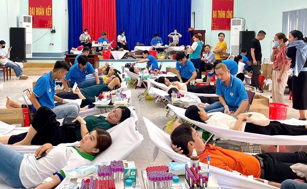 Đoàn viên Bệnh viện Quân dân y 16 tham gia hiến máu tình nguyện.