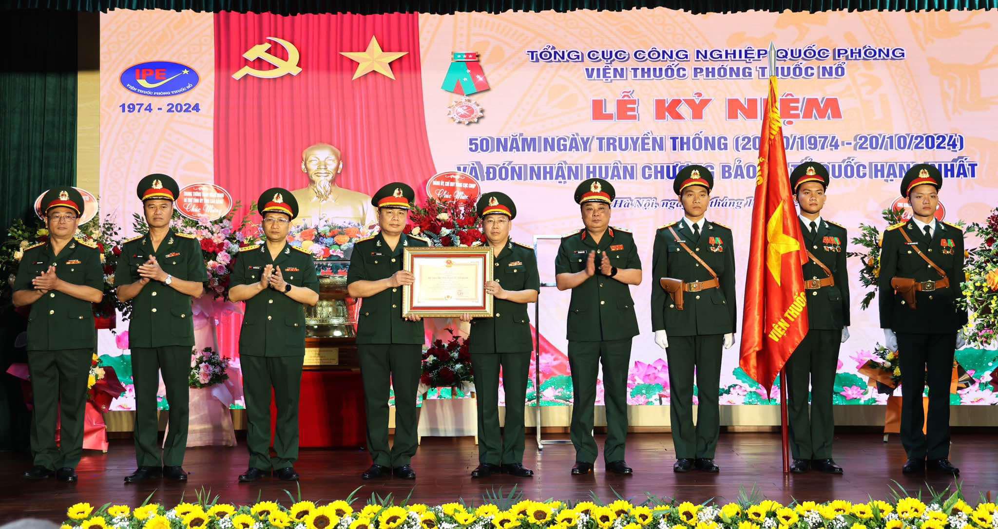 Tại buổi lễ, thừa ủy quyền của Chủ tịch nước, Trung tướng Hồ Quang Tuấn đã gắn Huân chương lên Quân kỳ Quyết thắng và trao Bằng chứng nhận Huân chương Bảo vệ Tổ quốc hạng Nhất tặng Viện Thuốc phóng Thuốc nổ.