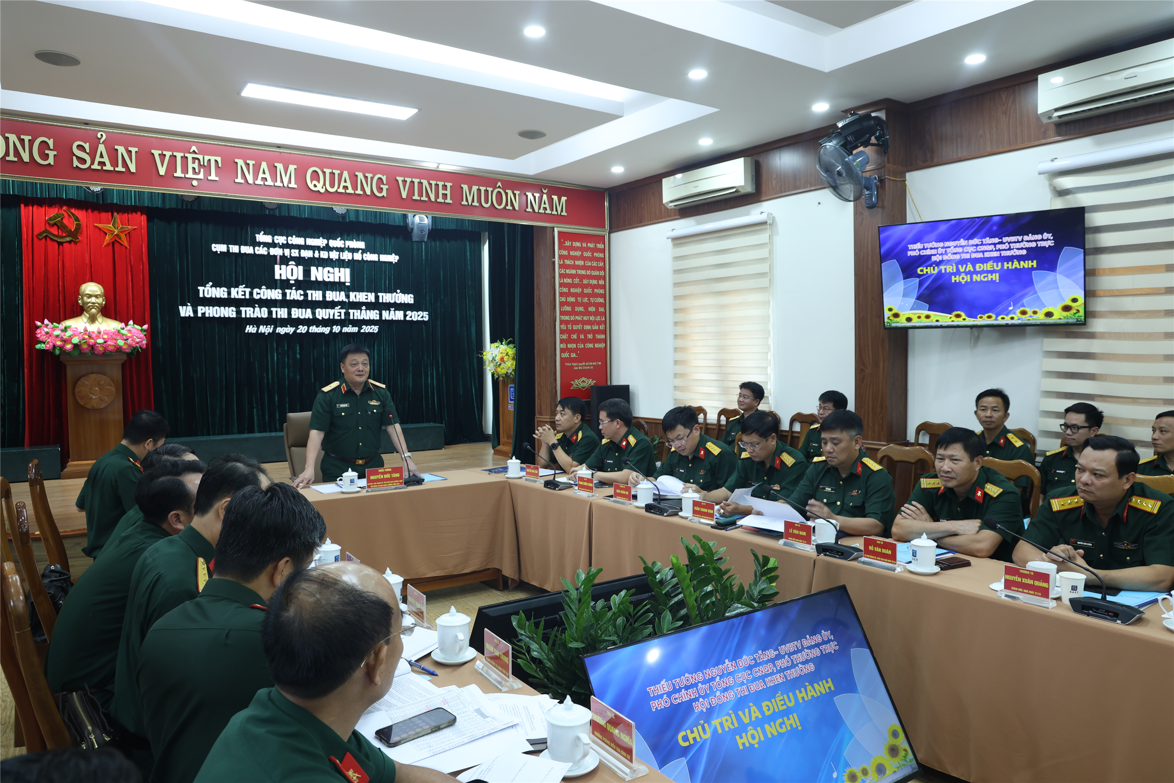 Kết luận hội nghị, Thiếu tướng Nguyễn Đức Tăng ghi nhận, biểu dương, đánh giá cao kết quả sản xuất, kinh doanh của các đơn vị trong Cụm thi đua. Đồng chí Phó Chính ủy Tổng cục yêu cầu, thời gian tới, các đơn vị tăng cường công tác tuyên truyền giáo dục nâng cao nhận thức, trách nhiệm cho cán bộ, đảng viên, quần chúng về vị trí, vai trò công tác TĐKT và phong trào TĐQT; bám sát vào đặc điểm tình hình, yêu cầu, nhiệm vụ; đẩy mạnh  nghiên cứu khoa học, sáng kiến cải tiến kỹ thuật, tạo ra các sản phẩm mới, nâng cao năng suất, hiệu quả sản xuất, kinh doanh; đảm bảo an toàn trong mọi hoạt động của đơn vị; chú trọng phát hiện, bồi dưỡng, xây dựng, nhân rộng điển hình tiên tiến, nhân tố mới, cách làm hay; kết hợp chặt chẽ giữa thi đua với khen thưởng bảo đảm công tâm, khách quan. Đối với kiến nghị của đơn vị, Thủ trưởng Tổng cục đề nghị các cơ quan chức năng tổng hợp đề xuất, báo cáo lãnh đạo, chỉ huy Tổng cục xem xét giải quyết.