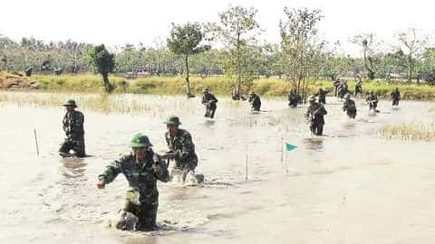 Lực lượng vũ trang thành phố Cần Thơ thực hiện diễn tập khu vực phòng thủ. Ảnh: CTV