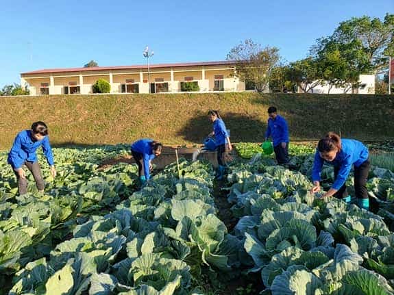 Đội viên trí thức trẻ tình nguyện thuộc Đoàn Kinh tế-Quốc phòng 379 (Quân khu 2) thực hiện mô hình tăng gia sản xuất. Ảnh: CTV