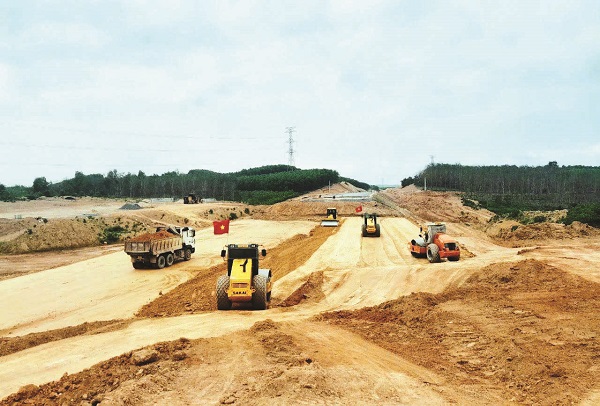 Tổng công ty xây dựng Trường Sơn triển khai thi công đường cao tốc đoạn Vạn Ninh - Cam Lộ. Ảnh: CTV