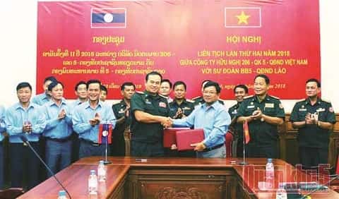 Ký kết giao ước tại Hội nghị Liên tịch giữa Công ty với Sư đoàn Bộ binh 5 (QĐND Lào).