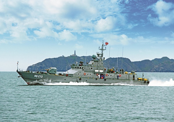Tàu pháo TT400TP chạy thử nghiệm trên biển.          Ảnh: TRẦN HOÀNG