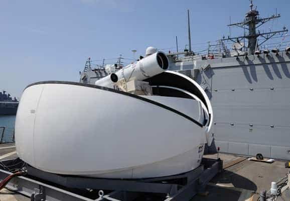Hệ thống vũ khí la-de công suất 30 kilowatt của Hải quân Mỹ  được lắp đặt trên tàu vận chuyển USS Ponce.
