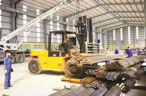 Cán bộ, nhân viên Kho K602 nhập vật tư thép vào kho bảo quản. Ảnh: HỒNG HẠNH
