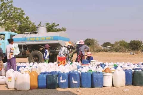 Xe téc của Lữ đoàn Đặc công nước 5 giúp các hộ dân địa phương khắc phục thời điểm thiếu nước sinh hoạt.