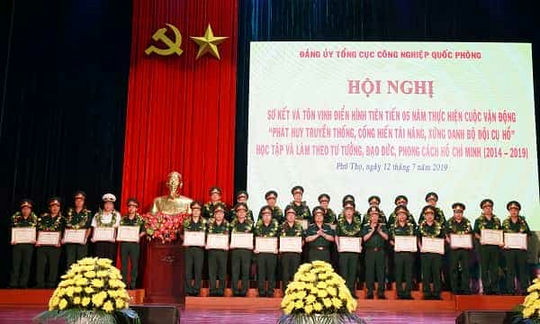 Thủ trưởng Tổng cục CNQP trao thưởng tặng các tập thể và cá nhân có thành tích xuất sắc trong thực hiện Cuộc vận động "Phát huy truyền thống, cống hiến tài năm, xứng danh Bộ đội Cụ Hồ", Học tập và làm theo tư tưởng, đạo đức, phong cách Hồ Chí Minh (giai đoạn 2014-2019). Ảnh: LÂM MINH