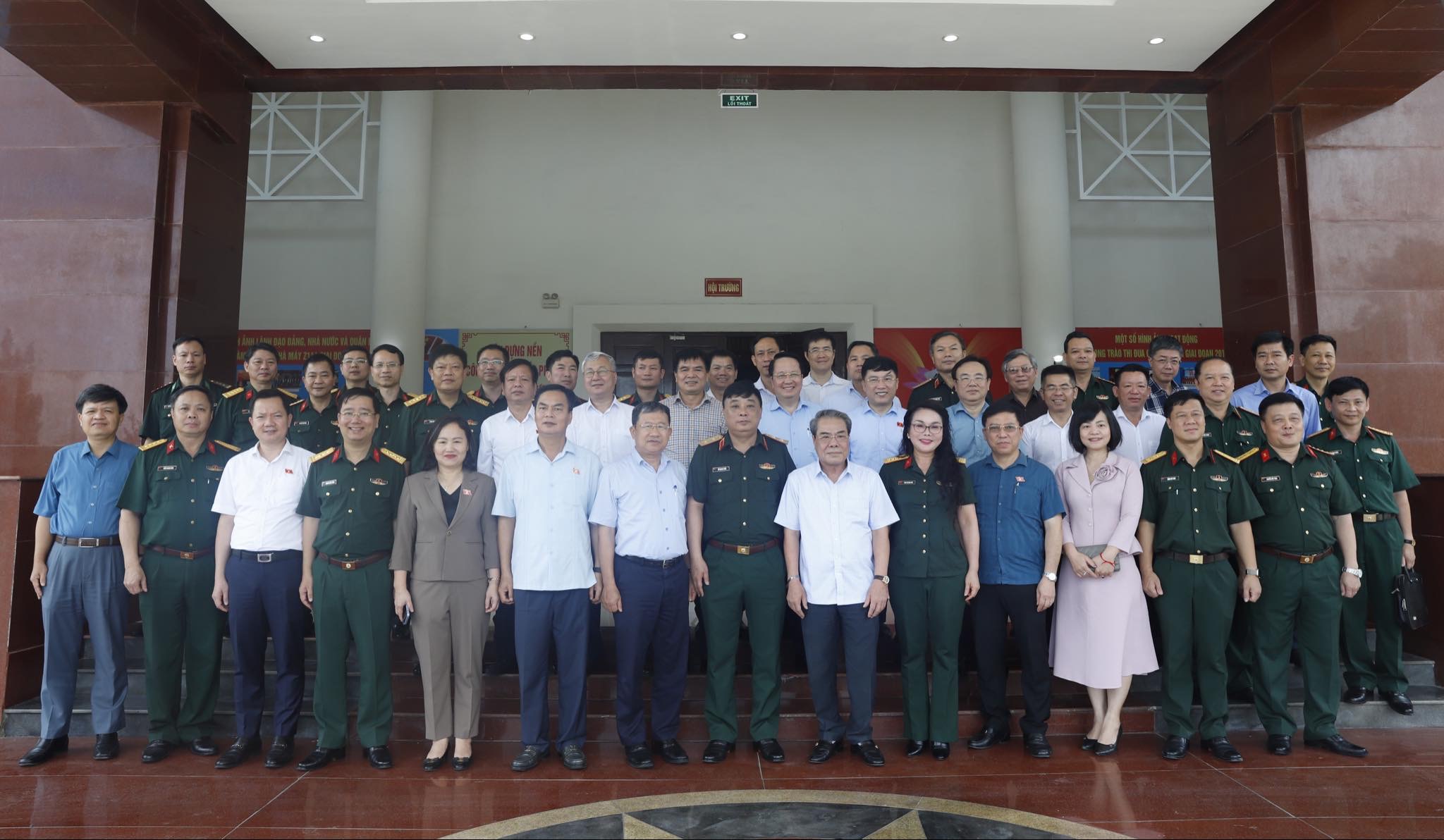 Lãnh đạo, chỉ huy Nhà máy chụp ảnh lưu niệm với Đoàn công tác của Quốc hội và Thủ trưởng Tổng cục CNQP.
