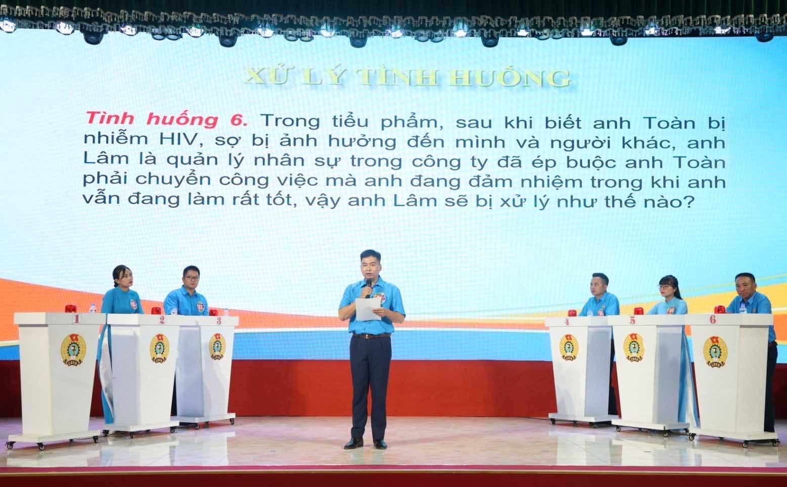 Hội thi gồm 3 phần thi: thi lý thuyết (bằng hình thức trắc nghiệm), xử lý tình huống và năng khiếu. Trải qua các phần thi, cả 6 thí sinh đã vận dụng tốt kiến thức, phương pháp, kỹ năng trong tổ chức hoạt động công đoàn và phong trào công nhân; có sự liên hệ phù hợp, sát với thực tế lao động - sản xuất và công tác công đoàn của Nhà máy.