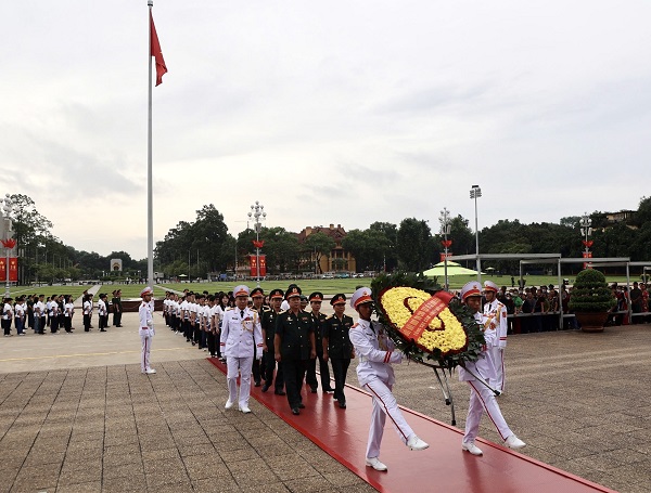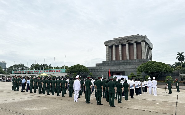 Đoàn đại biểu dự Hội nghị tuyên dương học sinh tiêu biểu của Tổng cục CNQP vào Lăng viếng Chủ tịch Hồ Chí Minh.