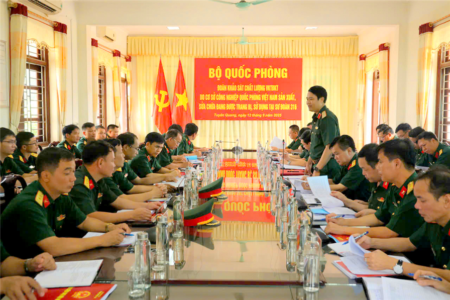 CNQP&KT - Ngày 12/9, tại Tuyên Quang, Đoàn công tác của Bộ Quốc phòng do Thiếu tướng Dương Văn Yên, Phó Chủ nhiệm Tổng cục Công nghiệp quốc phòng (CNQP), làm trưởng đoàn đã có buổi khảo sát chất lượng vũ khí, trang bị kỹ thuật do Tổng cục CNQP sản xuất và sửa chữa đang được sử dụng tại Sư đoàn 316, Quân khu 2.