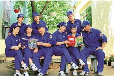 Công nhân Nhà máy Z115 tham khảo báo chí, nâng cao nhận thức chính trị trong giờ nghỉ giữa ca.     Ảnh: CTV