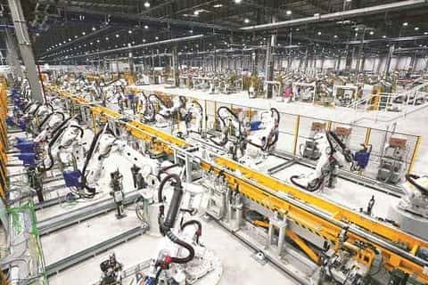 Nhà máy ô tô VinFast được trang bị hệ thống máy móc, thiết bị hiện đại, mức độ tự động hóa cao với hàng nghìn robot. Ảnh: CTV