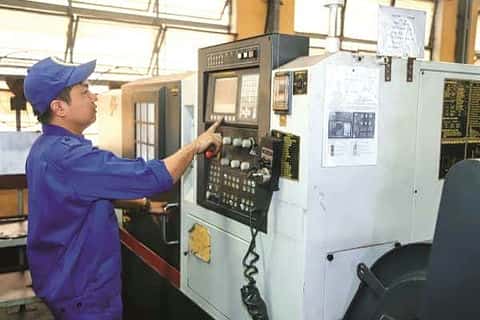 Công nhân Nhà máy Z183 sử dụng thiết bị hiện đại trong sản xuất sản phẩm cơ khí lưỡng dụng. Ảnh: BÁ ANH