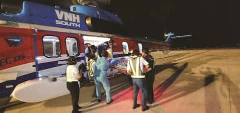Đưa bệnh nhân cấp cứu từ đảo Phan Vinh (huyện đảo Trường Sa, tỉnh Khánh Hòa) về đất liền an toàn. Ảnh: CTV