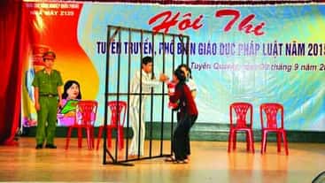 Hoạt động tuyên truyền, phổ biến giáo dục pháp luật bằng hình thức sân khấu hóa ở Nhà máy Z129.    Ảnh: CTV
