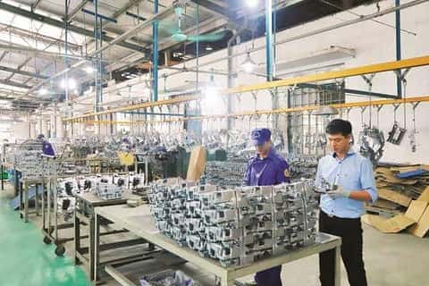 Sản xuất khung máy khâu xuất khẩu ở Nhà máy Z117. Ảnh: PV