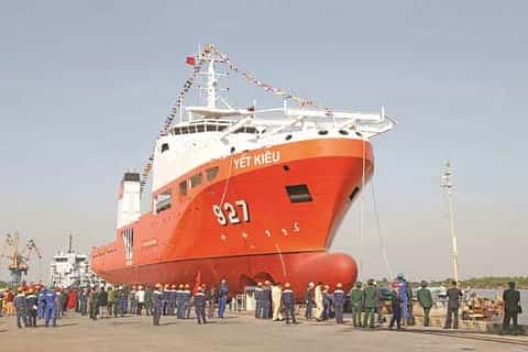Tàu cứu hộ tàu ngầm do Nhà máy Z189 đóng mới cho Quân chủng Hải quân. Ảnh: TRẦN LÊ