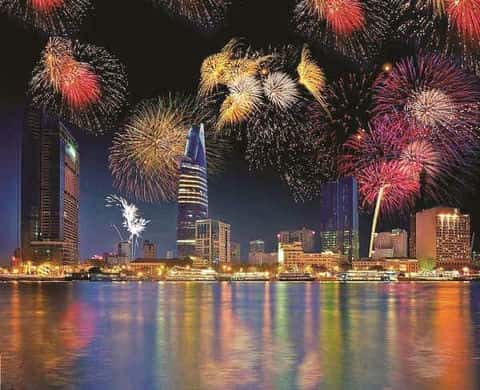 Xem bắn pháo hoa trong thời khắc giao thừa là món ăn tinh thần rất có ý nghĩa đối với người dân. Ảnh: CTV