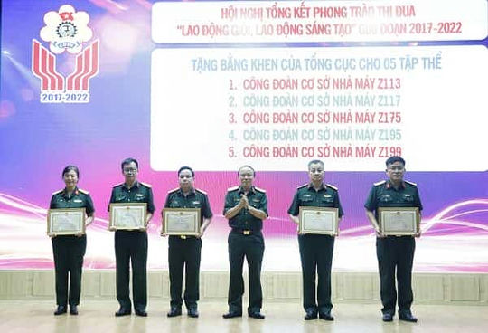 Tổng cục Công nghiệp quốc phòng (CNQP) có hàng chục nghìn cán bộ, đoàn viên công đoàn (ĐVCĐ); công tác, làm việc trên các lĩnh vực nghiên cứu khoa học, chỉ huy, quản lý, sản xuất - kinh doanh, hành chính - văn phòng... Trong 5 năm qua (2017-2022), phong trào thi đua “Lao động giỏi, lao động sáng tạo” của tổ chức công đoàn trong Tổng cục CNQP đã bám sát, cụ thể hóa và gắn kết chặt chẽ với phong trào thi đua Quyết thắng, là động lực mạnh mẽ cổ vũ ĐVCĐ hoàn thành tốt mọi nhiệm vụ được giao.