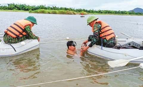Lực lượng của Gaet rà phá bom mìn dưới nước, thuộc Dự án Kè sông Ba (tỉnh Phú Yên).             Ảnh: VĂN NGHỊ