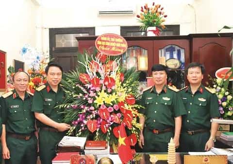 Trung tướng Nguyễn Mạnh Hùng, Bí thư Đảng ủy, Chính ủy Tổng cục CNQP, Chủ tịch Hội đồng chỉ đạo Tạp chí CNQP và Kinh tế, chúc mừng Ban biên tập Tạp chí nhân Ngày báo chí cách mạng Việt Nam (21/6).  Ảnh: MINH TUẤN