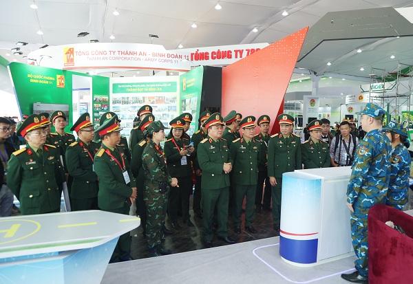Đoàn công tác Bộ Quốc phòng kiểm tra công tác trưng bày sản phẩm.